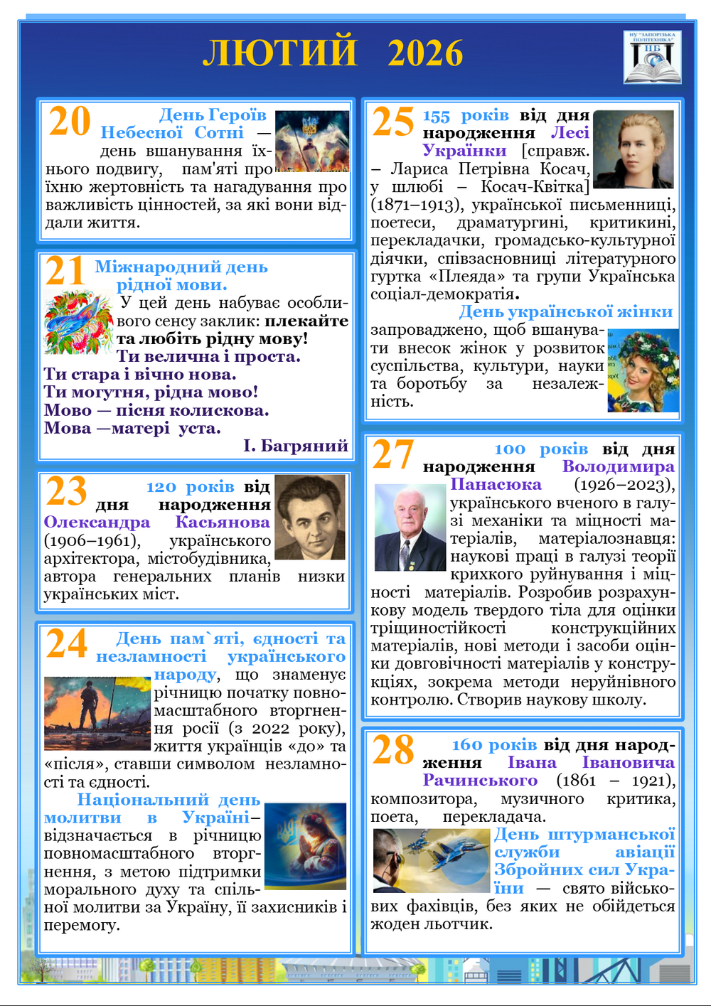 Календар знаменних дат і подій на лютий 2023 року