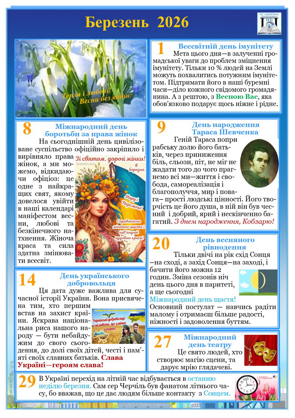 Календар знаменних дат і подій на березень 2026 року