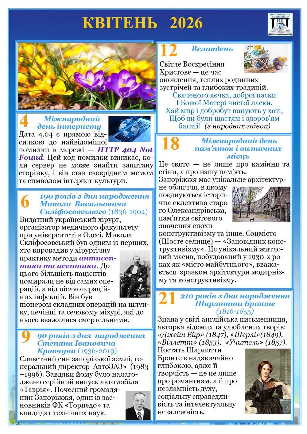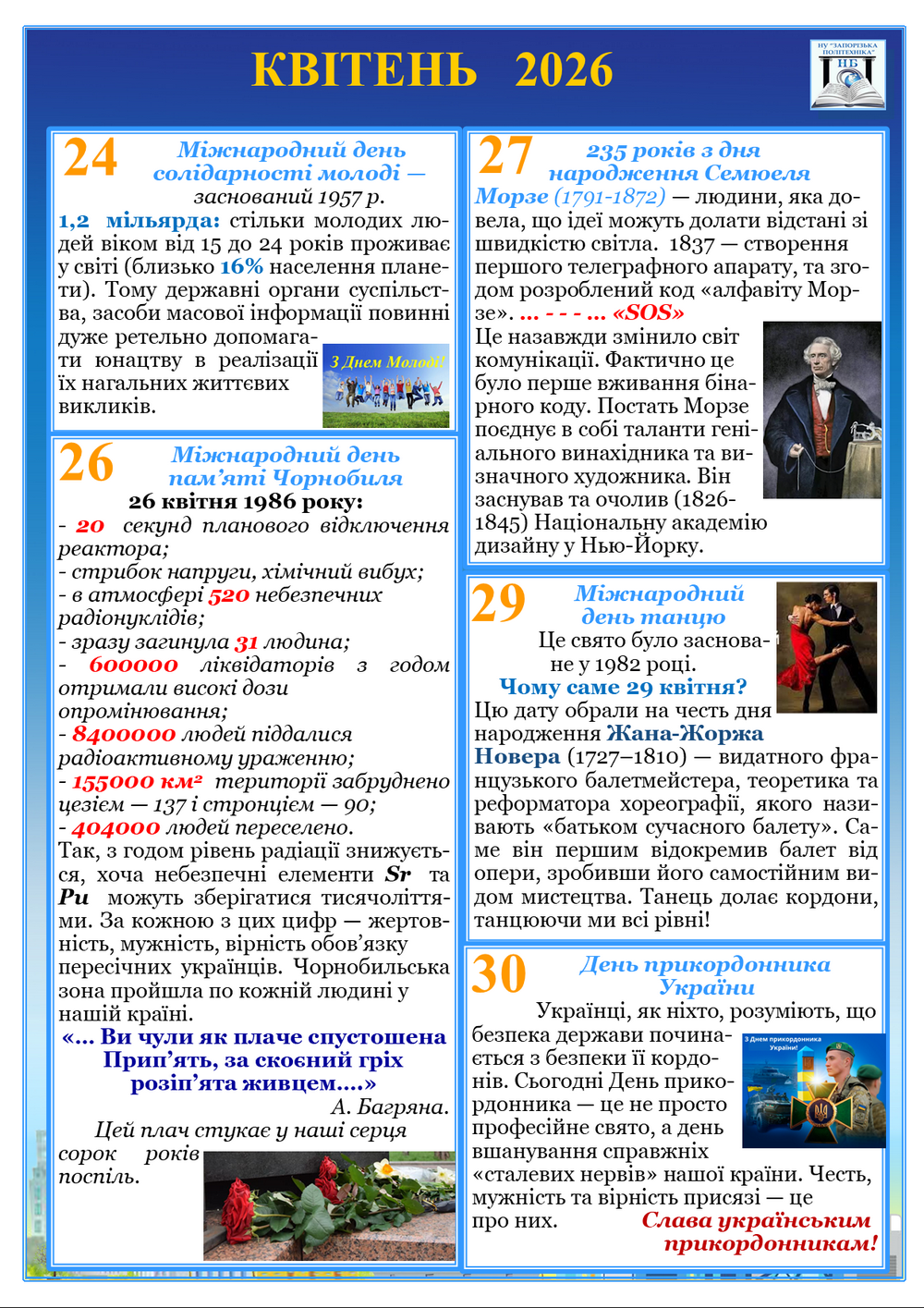 Календар знаменних дат і подій на квітень 2026 року